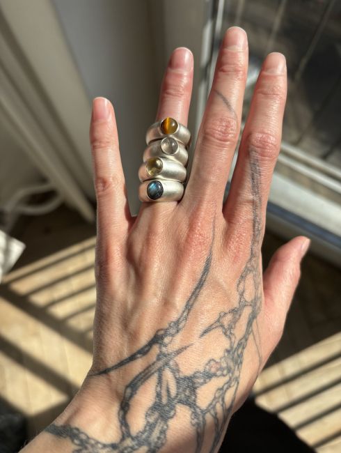 Signet with 6x8mm with various mineral types to choose from, made with traditional goldsmith techniques. New version from the Loop collection with matte finish.