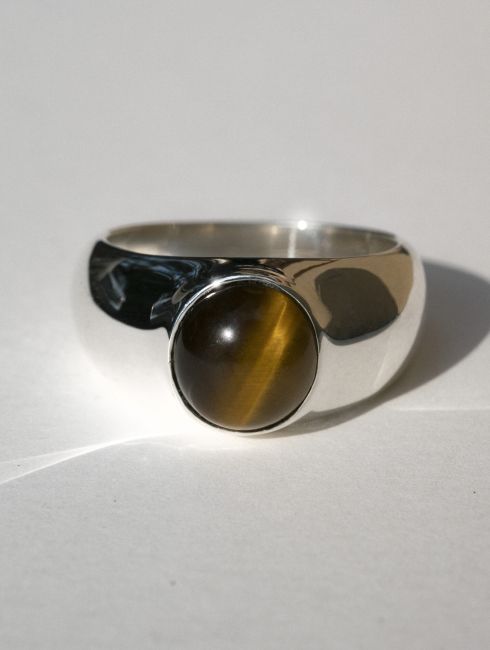 Signet with 6x8mm stone with various mineral types to choose from, made with traditional goldsmith techniques.